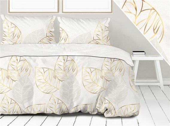 Pościel satynowa 160x200 Boho kremowa złota liście Frotex 1