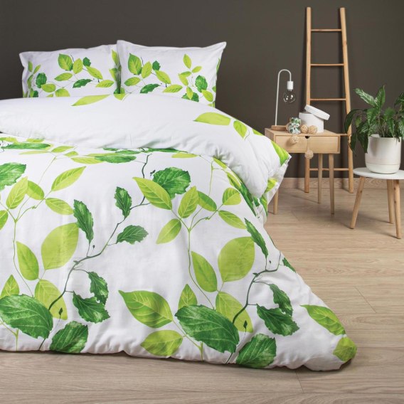 Pościel satynowa 160x200 biała zielona liście 1516/1 Satynlove 5