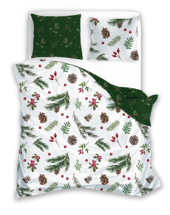 Pościel świąteczna 160x200 Scandic 037 zielona biała dwustronna Faro