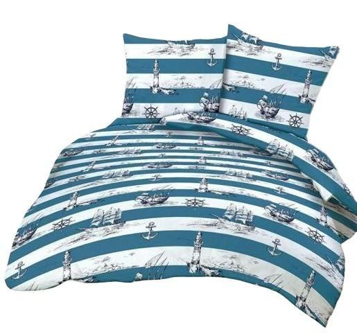 Pościel z kory 140x200 Marynarska Statki Kotwice Latarnia Morska na guziki 100% bawełna gruba