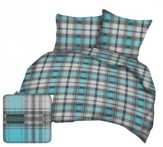 Pościel z kory 140x200 szara turkusowa kratka Krzyś A155-3 Kora 23