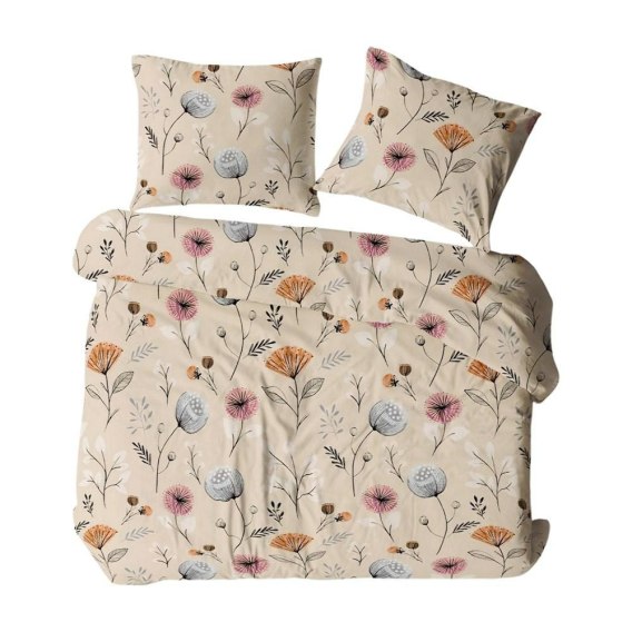 Pościel z kory 160x200 beżowa wielokolorowa kwiaty 1709N Bielawa KARO