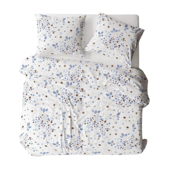 Pościel z kory 160x200 biała niebieska liście 1789N Bielawa KARO