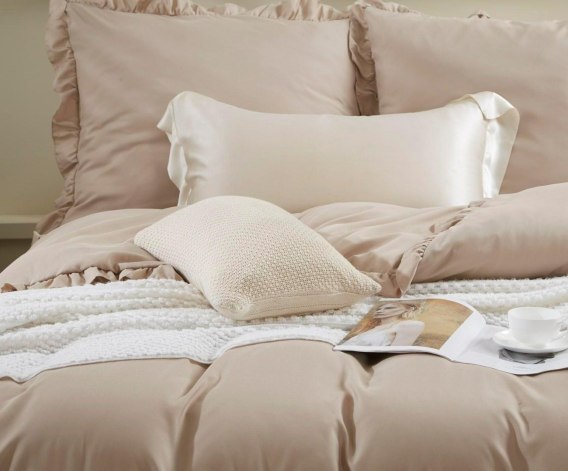 Pościel z mikrofibry 140x200 Ruffy beżowa z falbanką I24