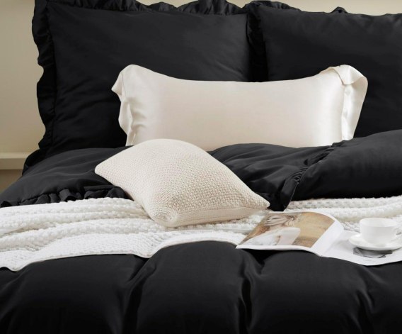 Pościel z mikrofibry 140x200 Ruffy czarna z falbanką I24