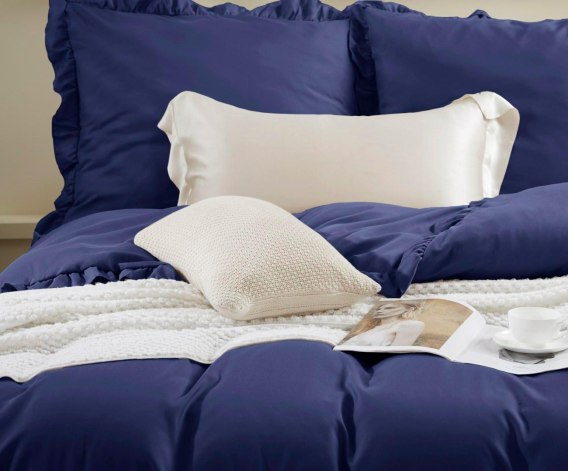 Pościel z mikrofibry 140x200 Ruffy granatowa z falbanką I24