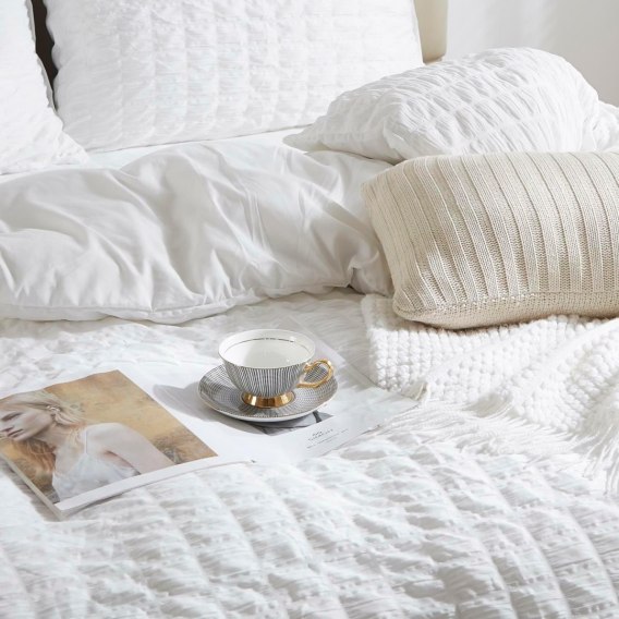 Pościel z mikrofibry 160x200 Creasy biała marszczona I24