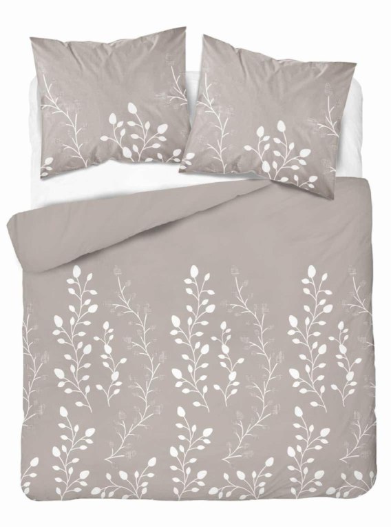 Pościel z mikrosatyny 160x200 beżowa biała liście 5346 A Micro 57