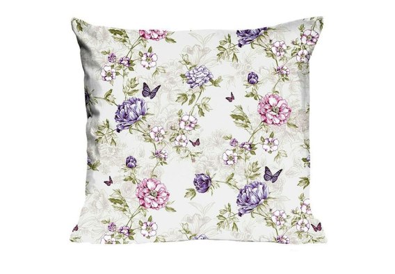 Poszewka bawełniana 40x40 1662N kremowa kwiaty motyle łąka Classic E24