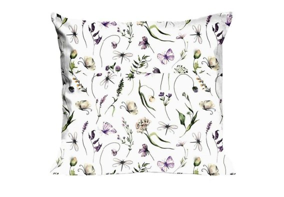 Poszewka bawełniana 40x40 1702N biała kwiatki motyle ważki łąka Classic E24