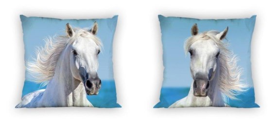 Poszewka bawełniana 40x40 Koń niebiaska biała dwustronna Faro