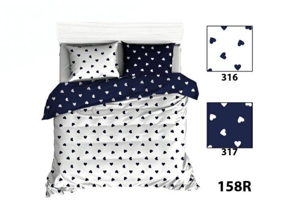 Poszewka bawełniana 40x40 R158 biała granatowa serduszka