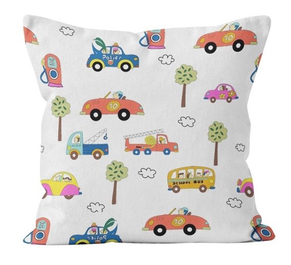 • Poszewka bawełniana 50x60 1436E biała Auta pojazdy policja straż pożarna 226N