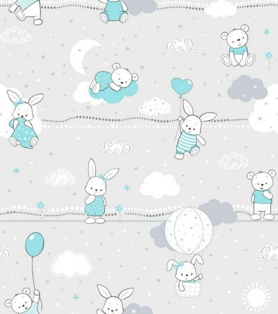 Poszewka bawełniana 50x60 55K misie zajączki szara turkusowa Kids 24