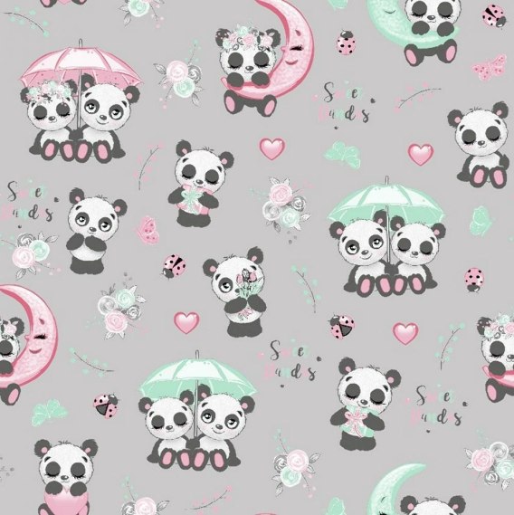 Poszewka bawełniana 50x60 670K pandy szara kolorowa Kids 24