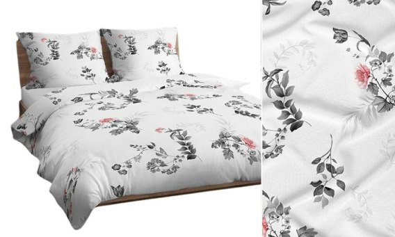 Poszewka bawełniana 50x60 biała grafitowa liście kwiaty 4304 C bawełna Max