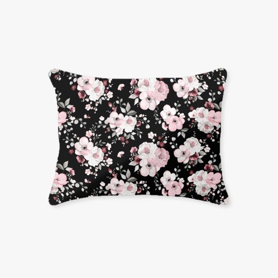 Poszewka bawełniana 50x60 kwiaty czarna różowa 1476N Classic