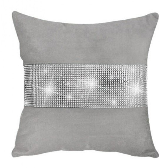 Poszewka dekoracyjna 45x45 Clare szara welurowa cyrkonie Domarex