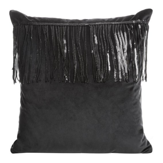 Poszewka dekoracyjna 45x45 Jasper czarna welurowa zdobiona połyskującym pasem czarnych cekinów Eurofirany