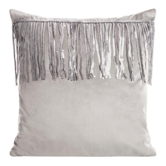 Poszewka dekoracyjna 45x45 Jasper srebrna welurowa zdobiona połyskującym pasem srebrnych cekinów Eurofirany