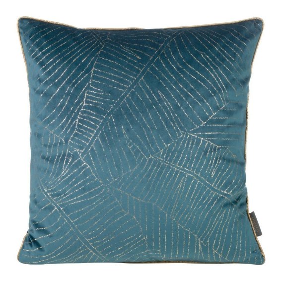 Poszewka dekoracyjna 45x45 Musa 2 granatowa ze złotym nadrukiem liści welurowa Limited Collection Eurofirany