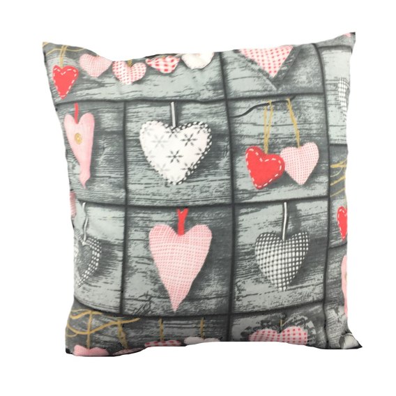 Poszewka z kory 50x60 617E Serca szara różowe serduszka obustronna