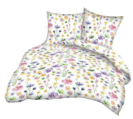 Poszewka z kory 70x80 135B biała łączka kolorowe kwiatki zapinana na guziki