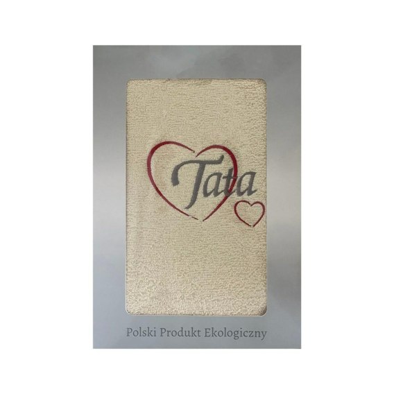 Prezent dla Taty ręcznik 70x140 Tata kremowy serduszka w pudełku na Dzień Taty