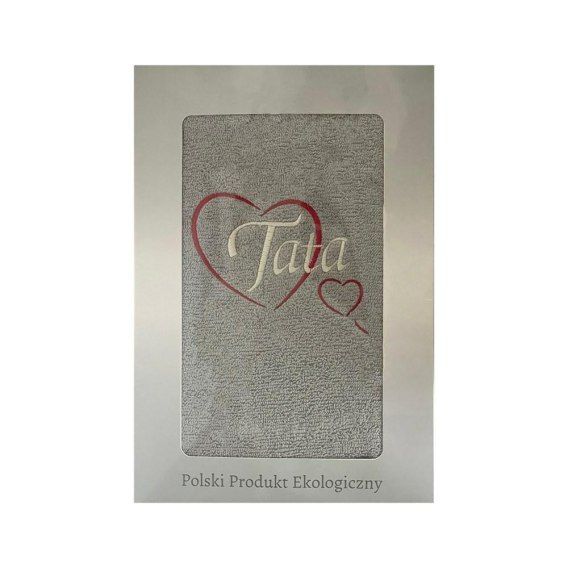 Prezent dla Taty ręcznik 70x140 Tata szary jasny serduszka w pudełku na Dzień Taty