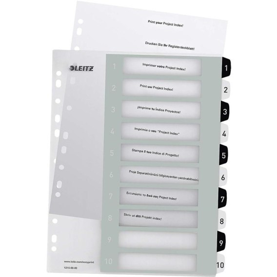 Przekładki PP Leitz Wow A4 Maxi A4 1-10 (do nadruku) biało-czarne