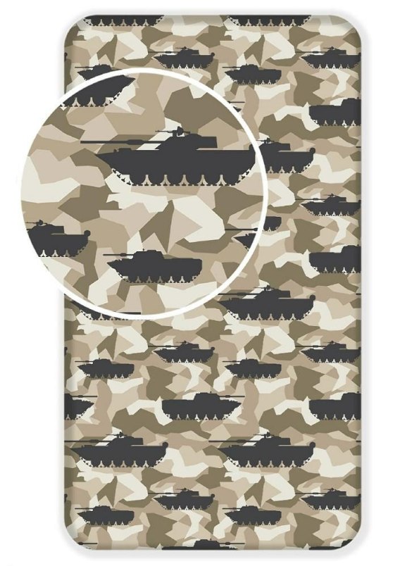 Prześcieradło bawełniane z gumką 90x200 Czołg Moro 8490 Tank dla dzieci beżowe dziecięce młodzieżowe