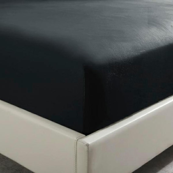 Prześcieradło satynowe 160x200 czarne jednobarwne na wysoki materac I24