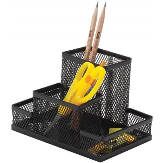 • Przybornik na biurko Q-Connect 4 komory metalowy czarny