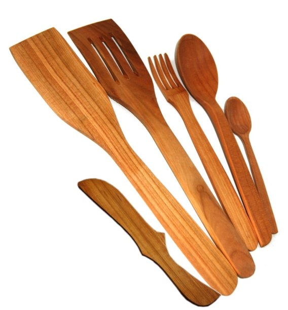 Elegancki Zestaw Przyborów Kuchennych z Drewna CzereśniowegoOdkryj wyjątkowy zestaw przyborów kuchennych, który łączy w sobie funkcjonalność i estetykę. Wykonany z trwałego i pięknego drewna czereśniowego, ten zestaw stanie się nie tylko praktycznym narzędziem w Twojej kuchni, ale również elegancką ozdobą.Zestaw zawiera wszystko, czego potrzebujesz do codziennego gotowania i serwowania potraw: Ażurowa łopatka - ok. 29 cm, idealna do przewracania delikatnych potraw, takich jak ryby czy naleśniki. Zwykła łopatka - ok. 29 cm, doskonała do smażenia i serwowania. Widelec - ok. 23 cm, perfekcyjny do serwowania mięsa i warzyw. Duża łyżka - ok. 20 - 27 cm (w zależności od partii), idealna do mieszania i serwowania zup oraz sosów. Mała łyżeczka - ok. 16 cm, perfekcyjna do cukru, miodu czy przypraw. Nożyk do masła i smalcu - ok. 19 cm, niezastąpiony przy smarowaniu pieczywa.Każdy element tego zestawu jest unikalny i może nieznacznie różnić się wymiarami i wyglądem od prezentowanych na zdjęciach, co dodaje mu unikalnego charakteru.Zalety zestawu: Wykonany z naturalnego drewna czereśniowego, które jest zarówno trwałe, jak i estetyczne. Bezpieczny dla naczyń z delikatnymi powierzchniami, takimi jak teflon czy ceramika. Łatwy w czyszczeniu i pielęgnacji. Każdy element zestawu jest niepowtarzalny, co gwarantuje jego unikalność.Dodaj odrobinę naturalnego piękna do swojej kuchni dzięki naszemu zestawowi przyborów z drewna czereśniowego, który z pewnością sprawi, że gotowanie stanie się jeszcze większą przyjemnością!