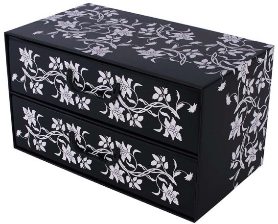 Pudełko kartonowe 2 szuflady poziome BAROKOWE KWIATY CZARNE