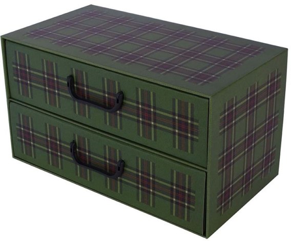 Pudełko kartonowe 2 szuflady poziome SZKOCKA KRATA ZIELONA