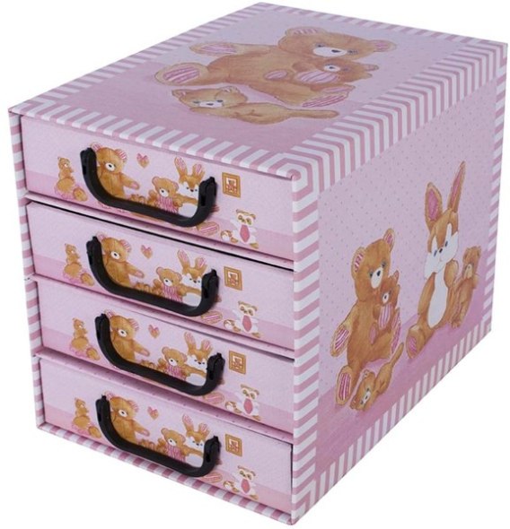 Pudełko kartonowe 4 szuflady pionowe MISIE RÓŻOWE