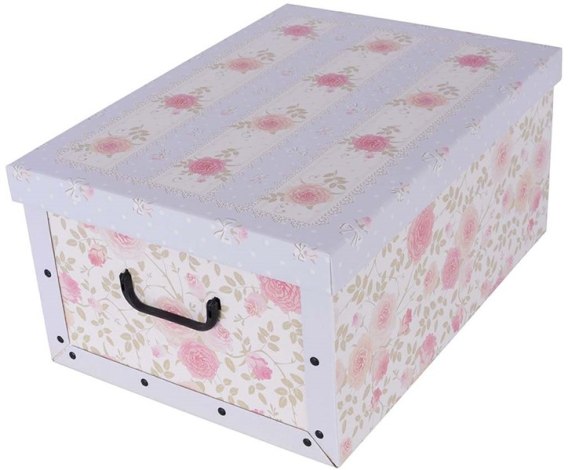 Ozdobne pudełko kartonowe z pokrywą do przechowywania. Praktyczne, funkcjonalne, zaprojektowane z dbałością o najdrobniejsze szczegóły. Wykonane z wysokiej jakości, wytrzymałego, kaszerowanego kartonu z połyskiem. Ścianki boczne spięte plastikowymi nitami. Solidne uchwyty z PCV ułatwiają przenoszenie. Produkt zaprojektowany tak, aby maksymalnie ułatwiać montaż, a jednocześnie gwarantuje najwyższą estetykę wykonania.