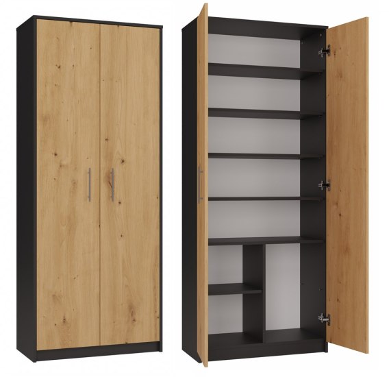 REGAŁ BIUROWY SALON BIURO DRZWI OLIV 2D ANTRACYT / DĄB ARTISAN