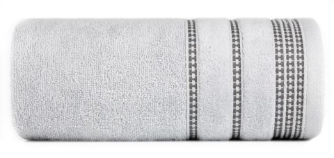 Ręcznik 30x50 Amanda srebrny z ozdobną welurową bordiurą w pasy frotte 500 g/m2 Eurofirany