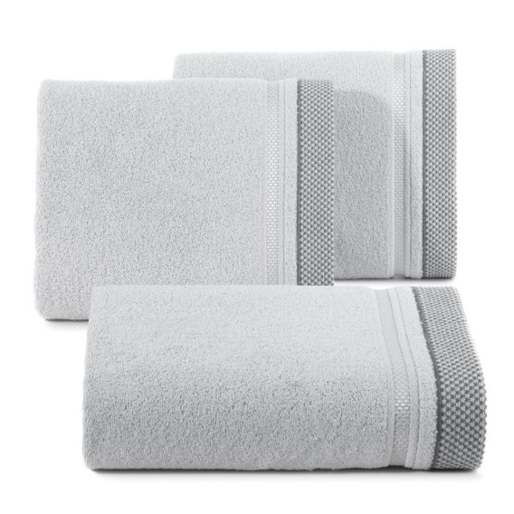 Ręcznik 70x140 Kinga srebrny z ozdobną bordiurą w pasy 485g/m2 frotte Eurofirany
