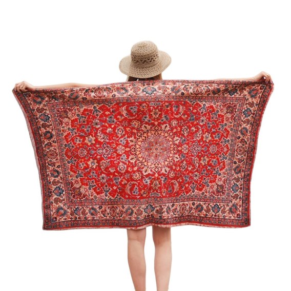 Ręcznik z nadrukiem ponadczasowego dywanu.