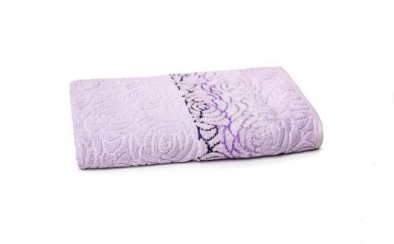 Ręcznik Rosso 70x140 wrzosowy frotte 500 g/m2 jednobarwny żakardowy z bordiurą o motywie różyczek