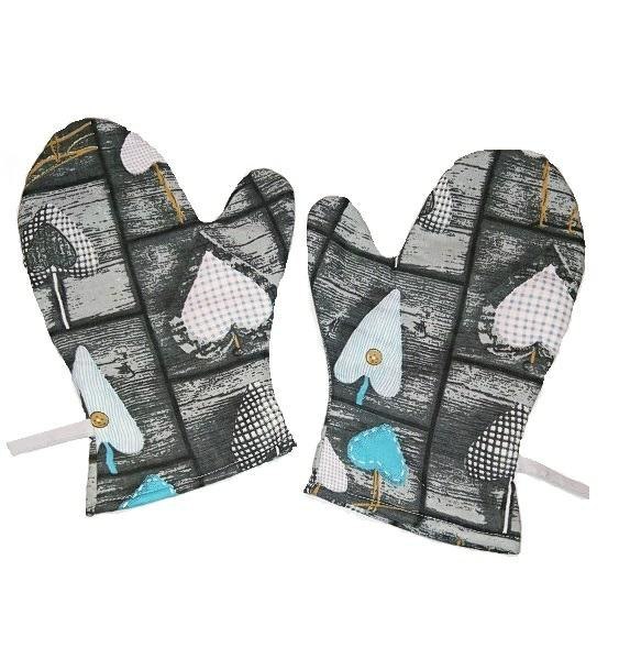 Rękawice kuchenne 17x27 z magnesem 2 szt 1113E serca szare turkusowe serduszka bawełniane do kuchni 9184 ochronne