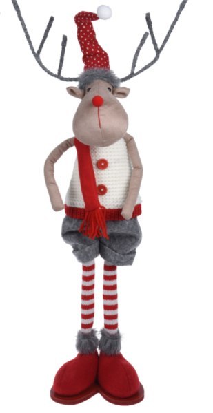 Renifer stojący dekoracja świąteczna 59 cm w białym sweterku