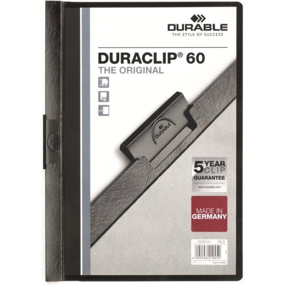 SKOROSZYT Z KLIPSEM A4 DURABLE DURACLIP 60, CZARNY