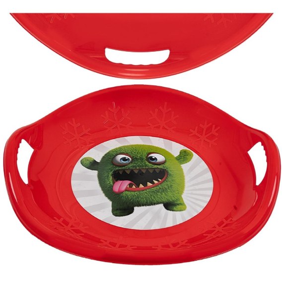 ŚLIZG TALERZ ZJAZDOWY UFO CZERWONY PROFILOWANY R.M oferuje świetną zabawę na zaśnieżonych górkach. Wykonany dobrej jakości tworzywa sztucznego, zapewni bezpieczeństwo i komfort użytkowania. Jego okrągła i profilowana konstrukcja sprawia, że jest łatwy do manewrowania, a dodatkowe uchwyty po bokach pozwolą na mocny chwyt podczas zjazdu.