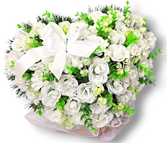 STROIK NA POMNIK SERCE KOMPOZYCJA KWIATOWA BIAŁE RÓŻE NA GRÓB