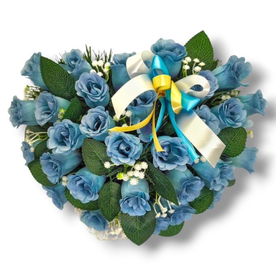 STROIK NA POMNIK SERCE KOMPOZYCJA KWIATOWA NIEBIESKIE RÓŻE SERDUSZKO NA GRÓB