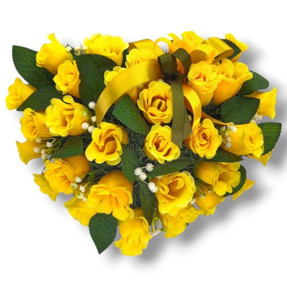 STROIK NA POMNIK SERCE KOMPOZYCJA KWIATOWA ZÓŁTE RÓŻE NA GRÓB